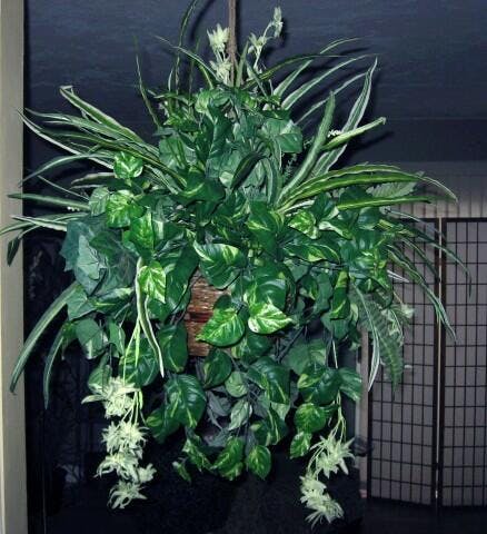 This Artificial Silk Assorted Deluxe Hanging Basket can be used for Indoor or Outdoor. The Artificial Silk Assorted Deluxe Hanging Basket comes with an assortment of artificial silk ivies, pvc grasses, artificial silk spider plants and more. Add greenery with color to a room by displaying this Artificial Silk Assorted Deluxe Hanging Basket. This Artificial Silk Assorted Deluxe Hanging Basket is arranged in assorted wicker baskets with assorted colored chains ready for display either indoor or outdoor or in the home or office.